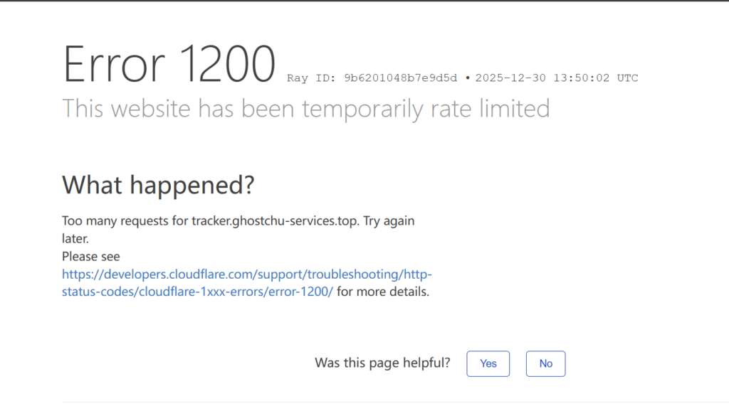 最后,大量请求堆积甚至压垮了 CloudFlare,域名被强制速率限制。