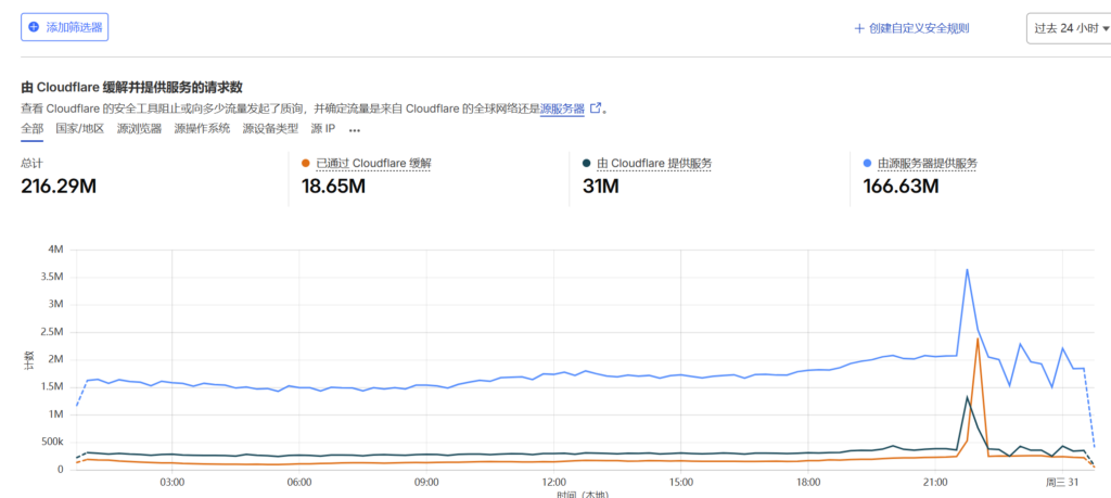 由于大量连接的涌入,服务器一旦重启就会立刻高负载立刻趴下。好在所有用户流量都要首先经过 CloudFlare,因此立刻在 CloudFlare 上部署安全规则阻断所有 Announce 请求,为服务修复争取时间,切断流量。
