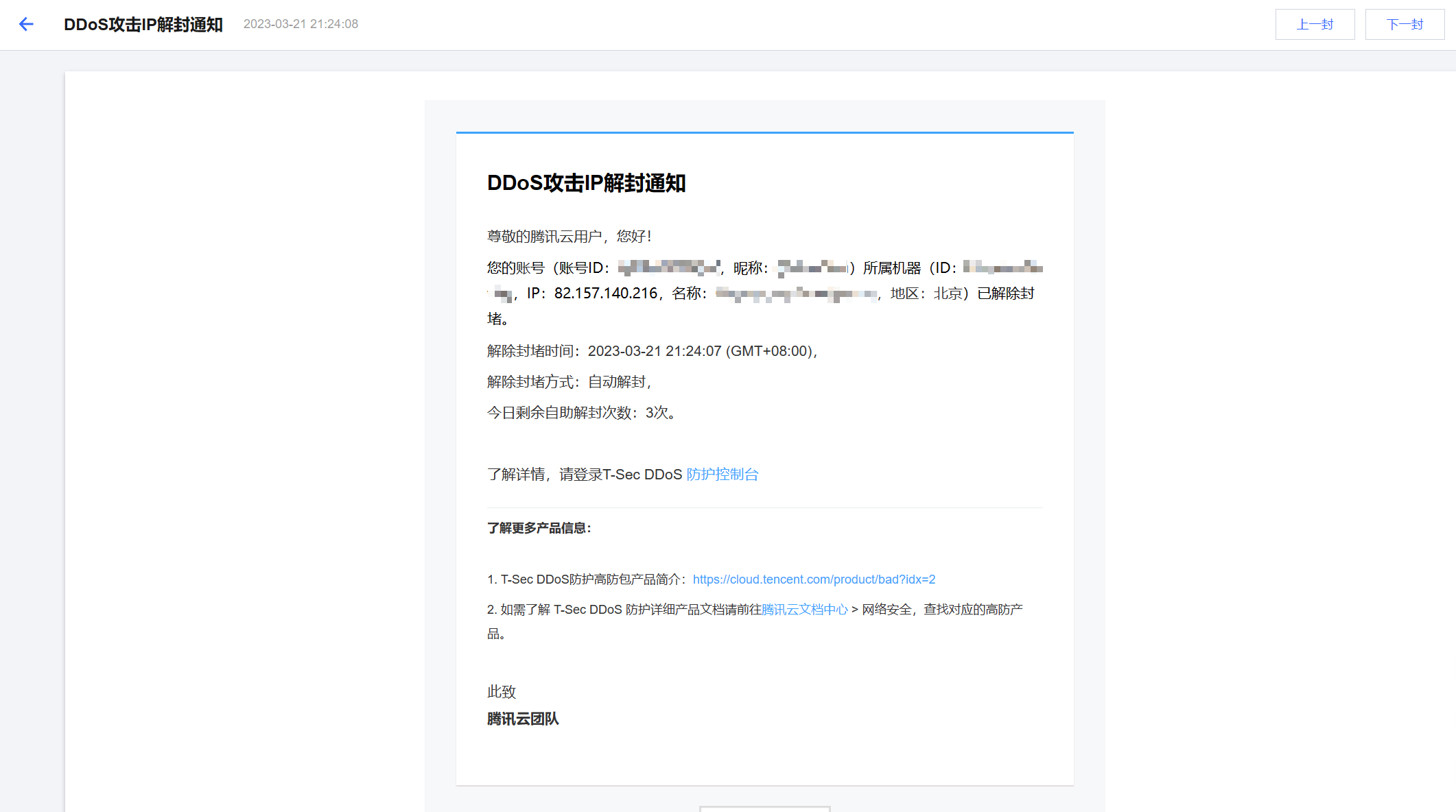 很快啊,钱到账之后腾讯云立刻就进行了解封操作。