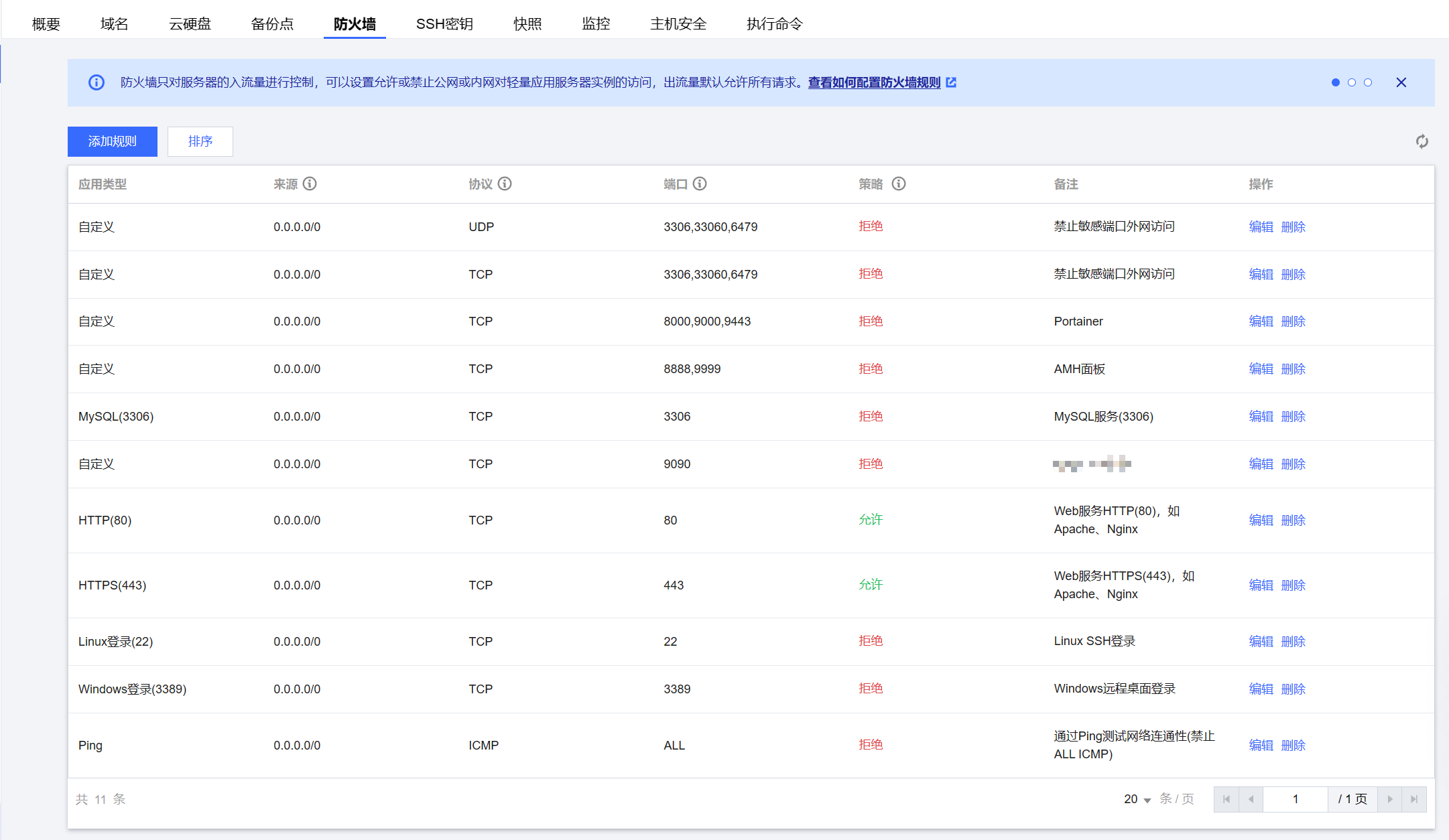 这些服务器的端口随用随开,不过我一般直接走 Tailscale,Tailscale 不需要开放额外端口,就能直接访问主机所有资源,省心省力。